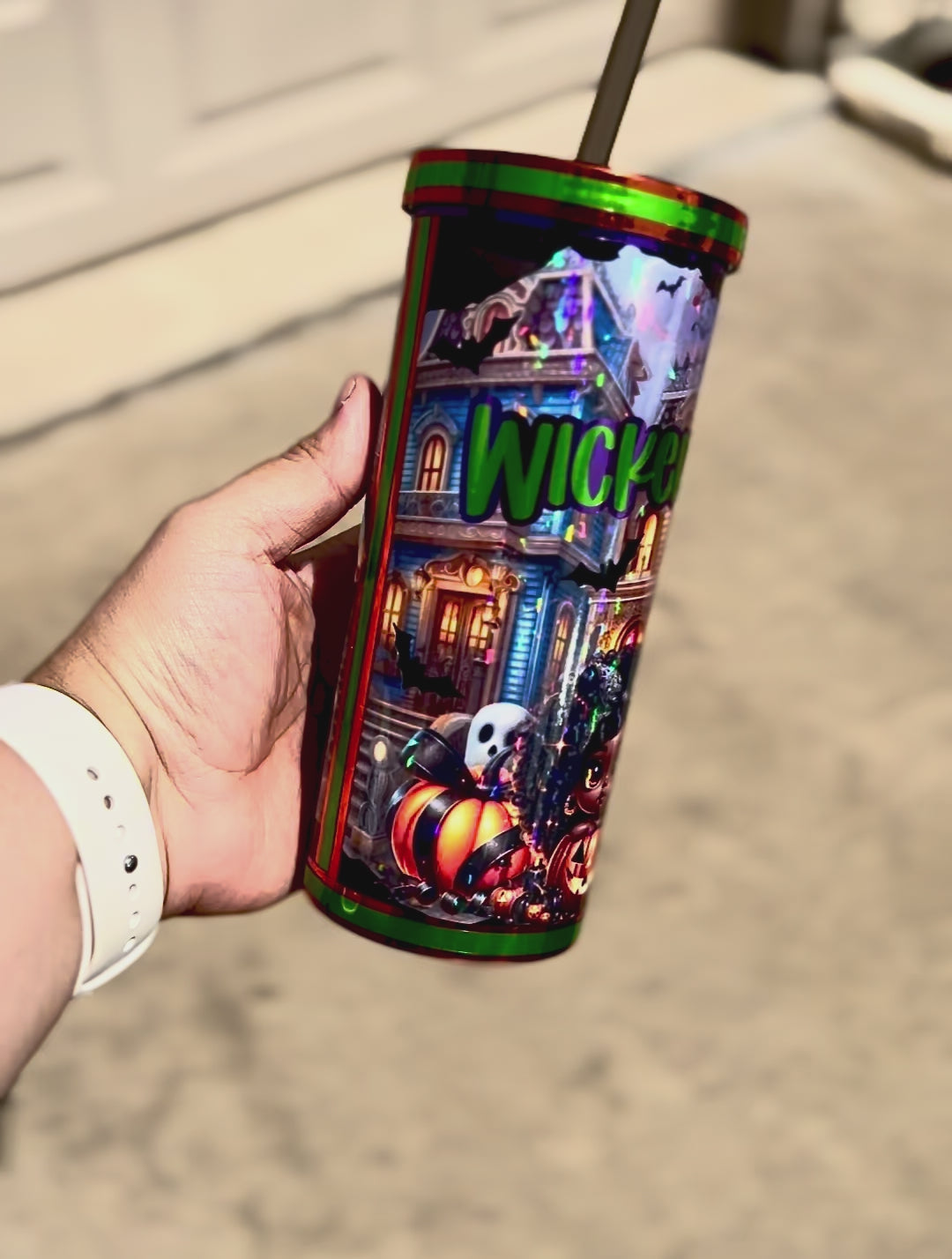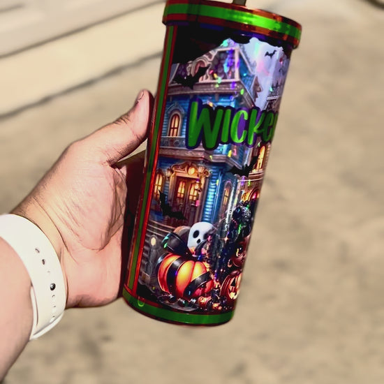 Featuring a glossy Halloween design full of holographic sparkle, playful pumpkins, and a wickedly cute little witch, this cup is perfect for Halloween lovers who like their drinks served cold.
